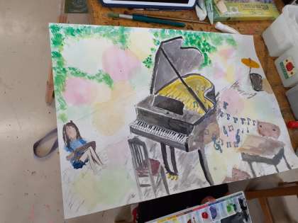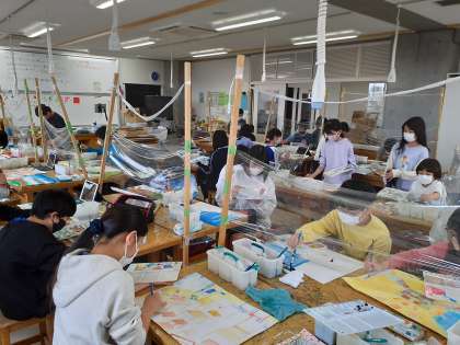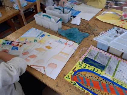 図工の時間です。お気に入りの場所を自分なりにイメージした素敵な作品ができそうです。