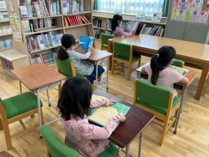読書の時間です。図書室の使い方にも慣れてきました。たくさん本を読んでくださいね。