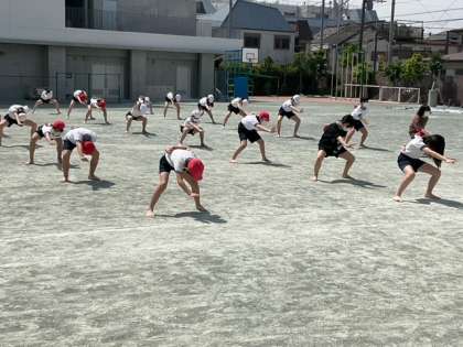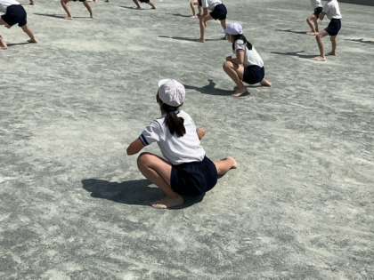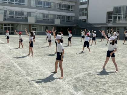 体育の時間です。運動会のフィナーレを飾るのが、6年生の「南中ソーラン」です。