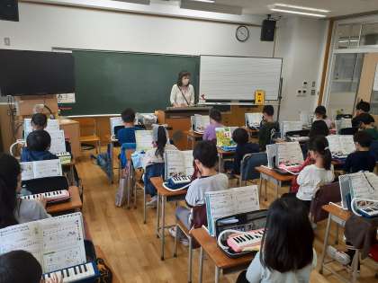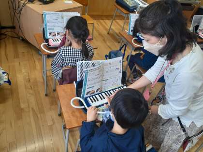 音楽の時間です。ピアニカの指くぐりと指またぎの練習をして上手になりました。