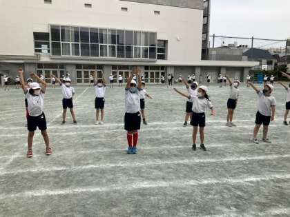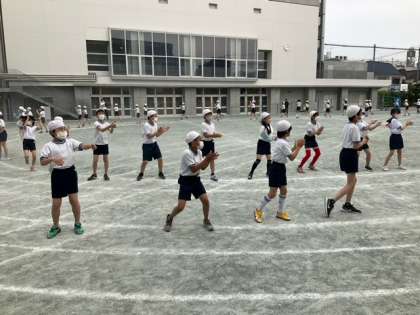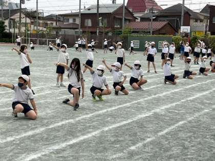 体育の時間です。校庭での自分の立ち位置が決まりました。しっかり覚えたら、ダンスに全力投球です。