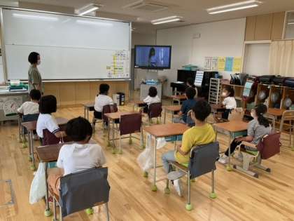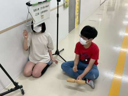 今朝の音楽朝会は、「楽器当てクイズ」です。音を聞いて、何の楽器かを当てます。