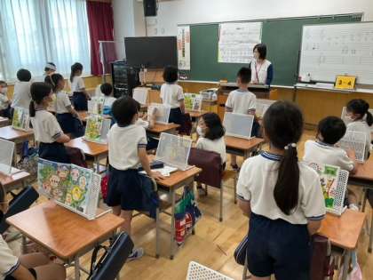音楽の時間です。運動会の歌を練習しています。運動会当日も元気に歌いましょう!
