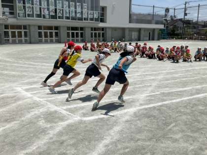 運動会に向けて、練習を重ねてきました。迫力ある走りを楽しみにしています。
