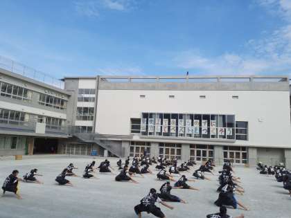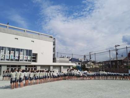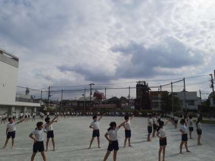 体育の時間です。力強いソーラン節、笑顔弾けるダンス、泥だらけになって頑張る組体操に涙が出そうになりました。いよいよ明後日が本番です。