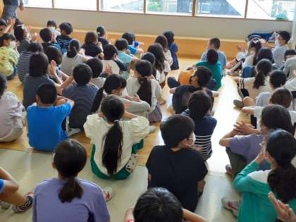 学活の時間です。明日の運動会に向けて先生の話を聞いています。子供たちからも拍手や明日の運動会に向けてのよい呟きがあり、やってやるぞという気持ちが伝わってきました。