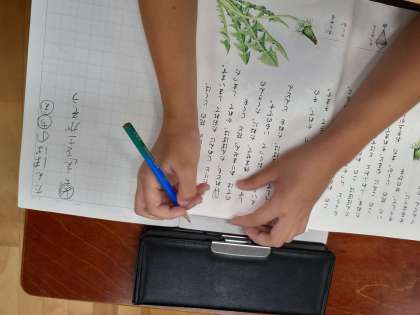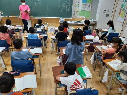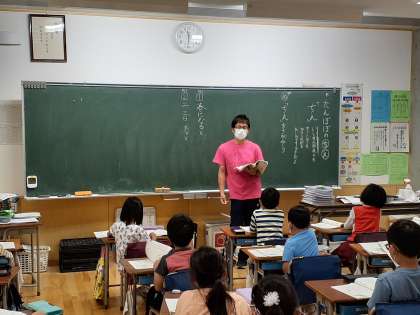国語の時間です。文のまとまりを見付けながら、たんぽぽのちえを探しています。