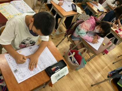 今朝のモジュールは、漢字の学習です。しっかりとめあてをもって、学習に取り組んでいます。