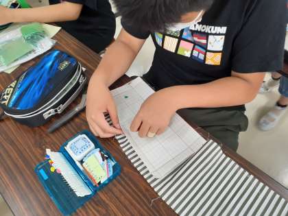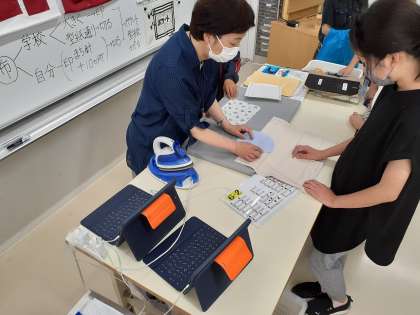 家庭科の時間です。マイバッグを作っています。一つ一つの製作過程に真剣にとり組んでいる様子が見られます。完成が楽しみです。