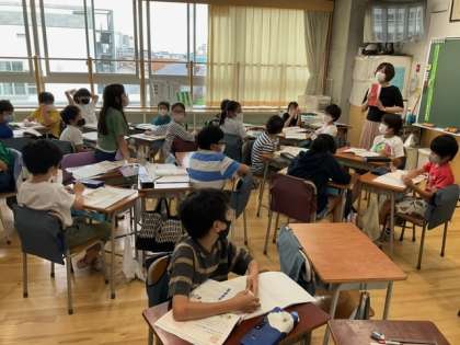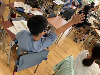 国語の時間です。「お礼の気持ちを伝えよう」気持ちが伝わる手紙の書き方を考えています。