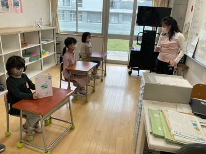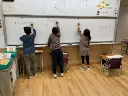 道徳の時間です。グループに分かれて、「友達と仲良くするために」などをテーマに話し合っています。