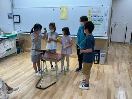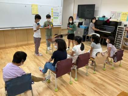 音楽の時間です。「のんびりゆこう のんびりゆこう」歌とベルのすてきなハーモニーですね。