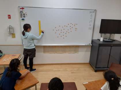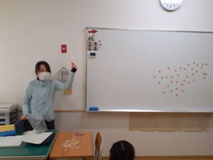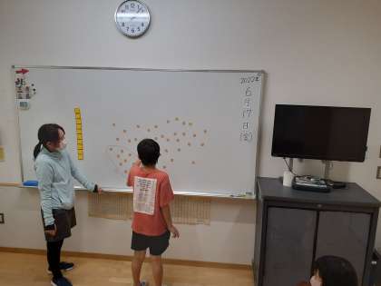 算数の時間です。10のかたまりを作って、2桁の数を表すことができました。