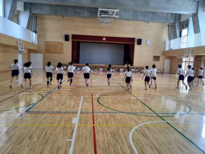 体育の時間です。スポーツテストの種目「シャトルラン」に取り組みました。友達を応援する声や拍手がたくさん聞こえました。