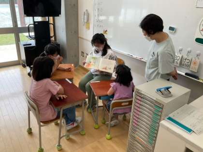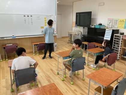 グループ学習の時間です。お休みの日の話をたくさんしたあと、作文に挑戦します。