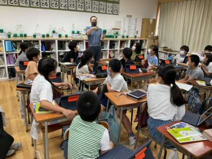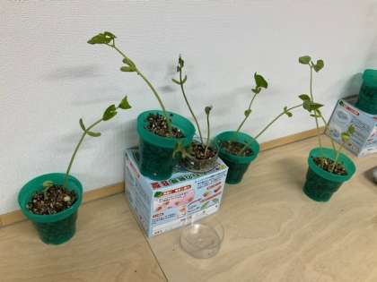 理科の時間です。インゲン豆をていねいに育てることができたので、実験結果も良いものになりました。