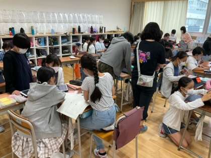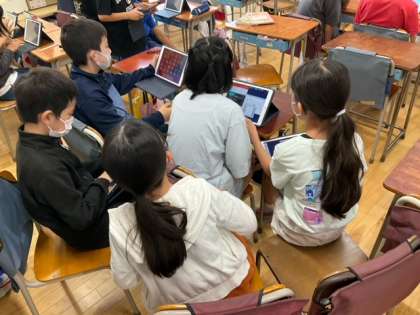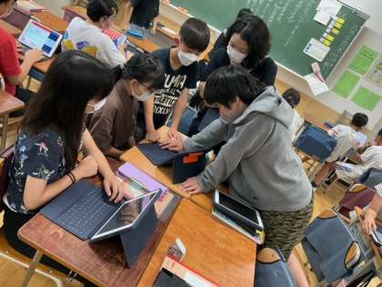 国語の時間です。「私たちにできること」明日の発表に向けて、資料の作成に力が入っています。