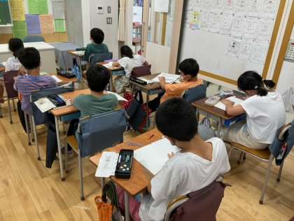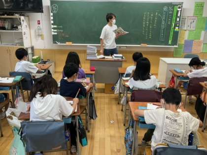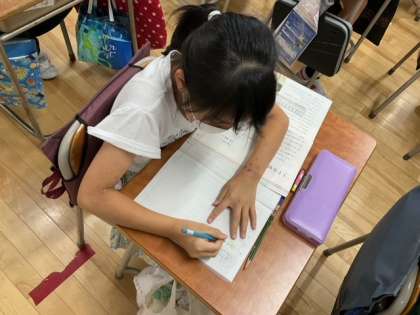 国語の時間です。「一つの花」学習のまとめとして、いくつかの視点をもとに感想を書いています。