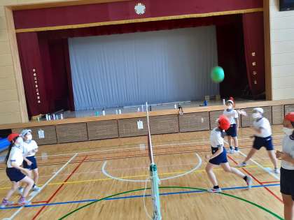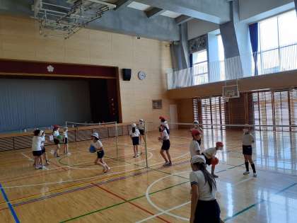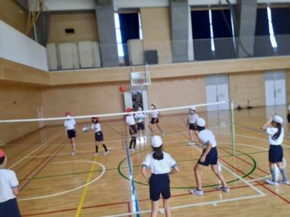 体育の時間です。トスやアタックの練習をしました。ソフトバレーボールを楽しんでいました。