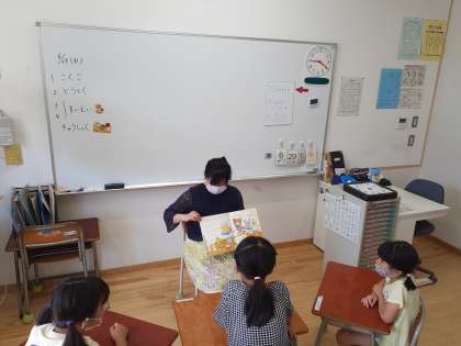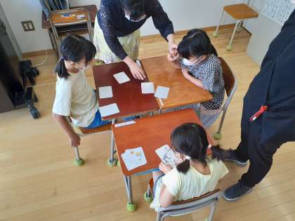 国語の時間です。反対言葉を考えました。反対言葉の神経衰弱をしながら楽しく学習しました。