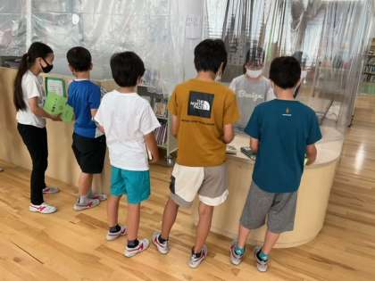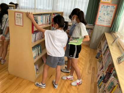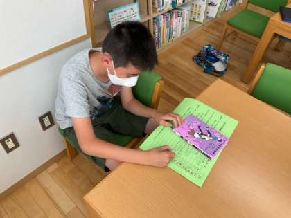 図書の貸し出しを行っています。夏休みの読書計画も進めてくださいね。