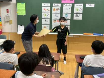 外国語の時間です。英語で作ろう「な〜んちゃって 時間割」どんな時間割になったのでしょうか?