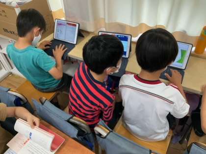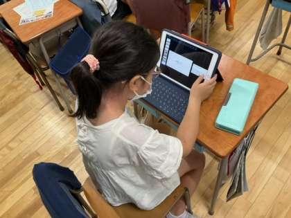 総合的な学習の時間です。環境問題について学習を進めてきました。テーマごとに、プレゼンテーション資料を作成しています。