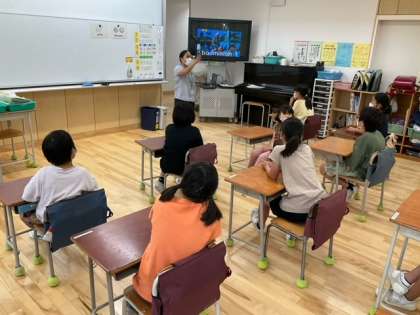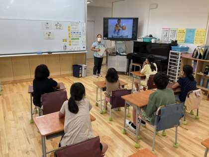 外国語活動の時間です。「What’s sport ?」クリケット、よく分かりましたね!