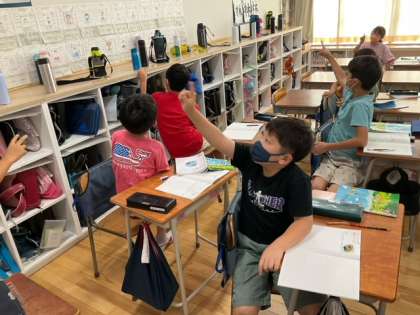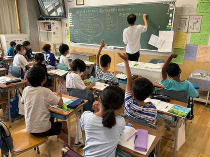 算数の時間です。「がい数」の学習をしています。どのような場面で、がい数を使うのかを考えています。