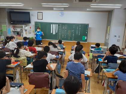 国語の時間です。いくつかの俳句から印象に残った部分を見付け、表現の工夫を学びました。