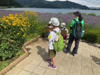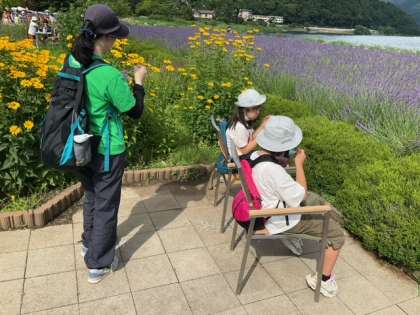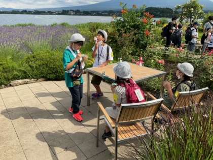大石公園で、とってもおいしいソフトクリームを食べています。目の前の景色がすばらしいです。