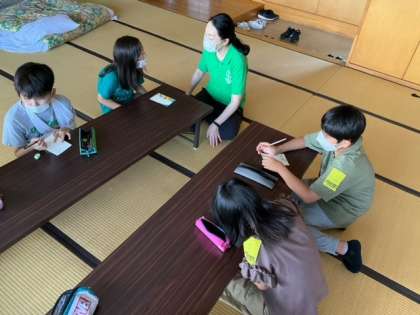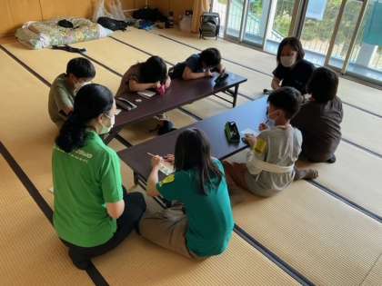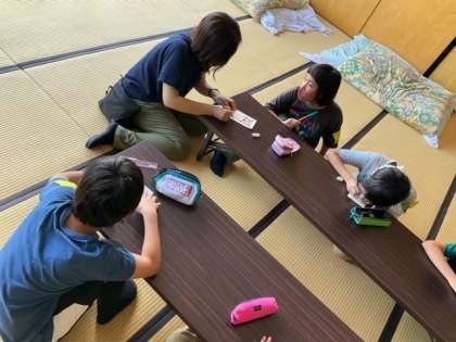 家族にあてて、手紙を書いています。河口湖移動教室で、楽しかったことやがんばったことは、