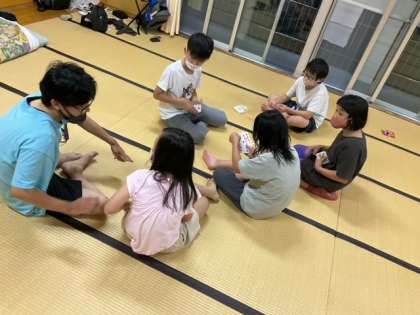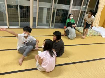 入浴タイムが終わり、部屋レクの時間です。お風呂は、2日間とも1番風呂でした。