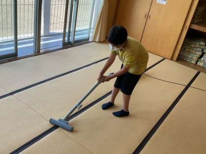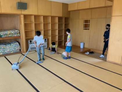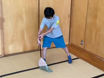 河口湖移動教室の宿舎での生活も、あと少しになりました。協力して部屋のそうじをがんばったいます。