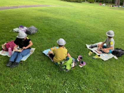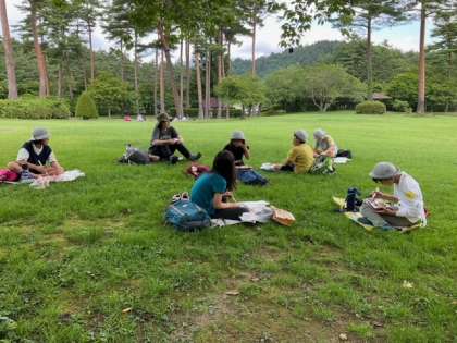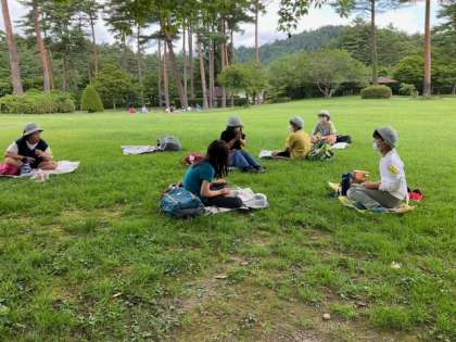 河口湖移動教室最後のお弁当タイムです。食べ終わったら、東京へ向かいます。