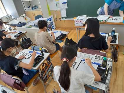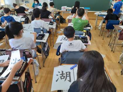書写の時間です。部分の組み立てを考えながら、はねやはらいにも気をつけて書くことができました。集中して取り組んでいる様子が伝わってきました。