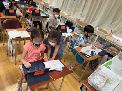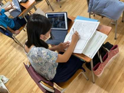 社会科の時間です。下北沢商店街について学習を進めてきました。学習のまとめとして、新聞づくりに取り組んでいます。