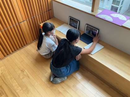 国語の時間です。「俳句」の学習が新たな展開を見せています。メイキング動画を各自で作成していて、その動画はQRコードを読み込むと友達同士で見ることができます。