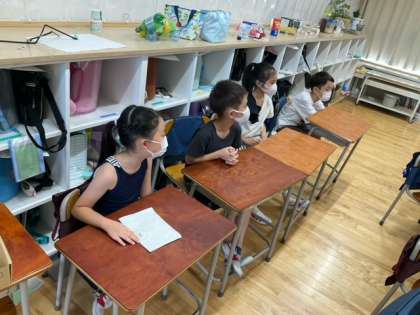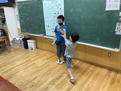 1学期のお楽しみ会をしています。司会の人が、一生懸命に進行していて、微笑ましいです。