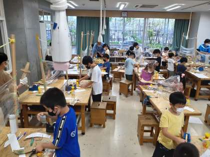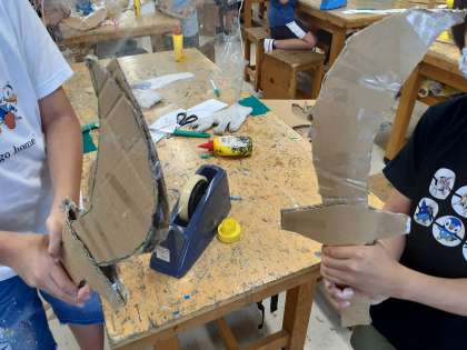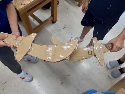 ダンボールで剣を作ろうのワークショップです。ダンボールカッターを上手に使って強そうな剣ができました。難しいところもあったけど、最後まで頑張りました。