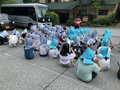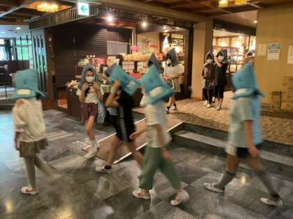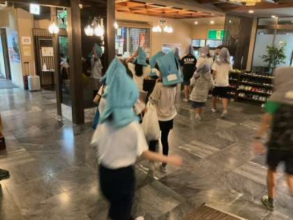 各自の部屋に入ったあと、避難訓練を実施しました。このあと、入浴の時期になります。