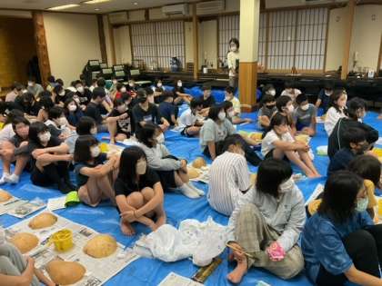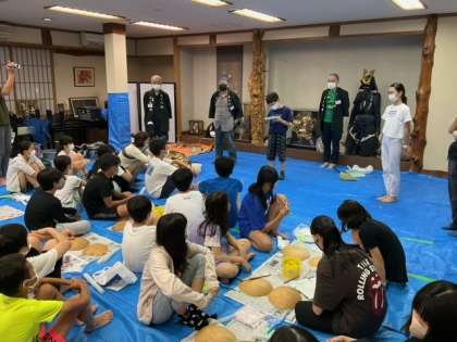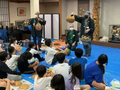 ふくべ細工体験に挑戦しています。まずは、説明をしっかり聞いてからですね。
