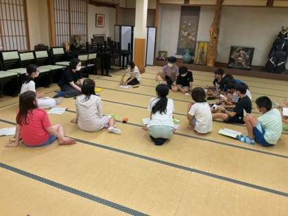 室長会議を開いています。1日のまとめと明日の確認をして、生活班のメンバーに伝えます。