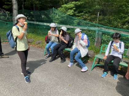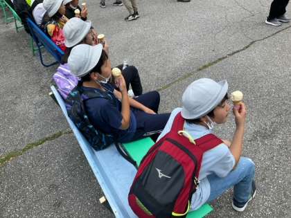 光徳牧場濃厚バニラアイスを堪能しています。お弁当をお腹いっぱい食べたばかりだよね!