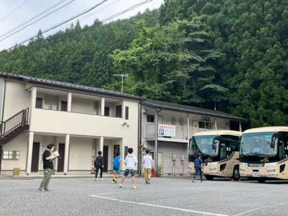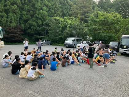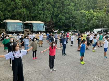 さわやかな空の下で、3日目の朝会を行っています。みんな元気で、最終日の朝を迎えました。