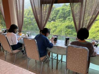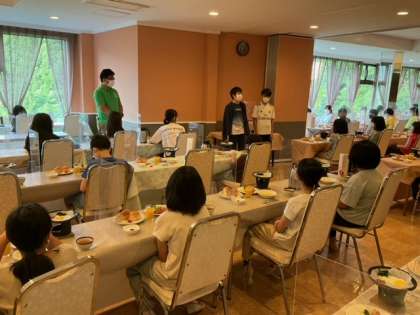 3日目の朝食になりました。少し眠たそうな子もいますが、全員元気です。