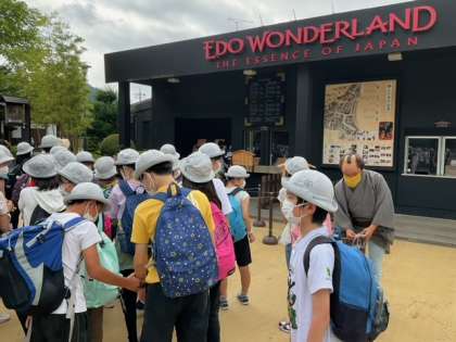 日光江戸村に到着しました。9時開村です。ここでは、グループ行動になります。仲良くね!