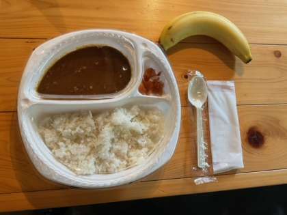 日光江戸村名物のカレーライスとバナナです。しっかり食べて、さあ東京に向かいましょう!