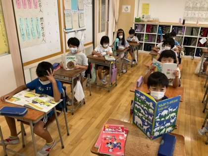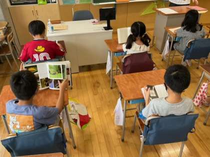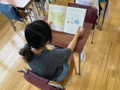とても静かに、集中して読書をしています。夏休み中は、どんな本を読みましたか?