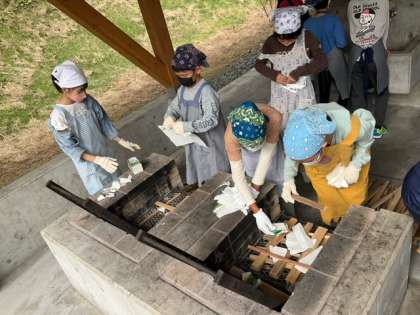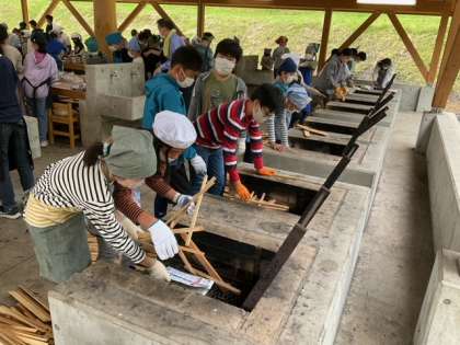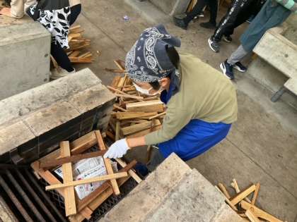 かまど係も奮闘中です。どうすればよく火がつくのかを考えながら、作業を進めています。